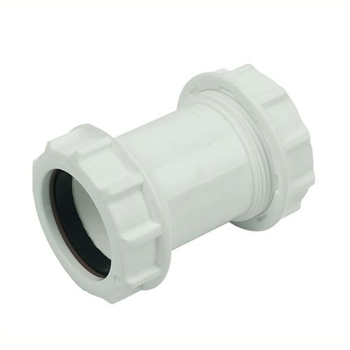 Waste couplings are used to join two lengths of pipe. This type of system uses a screw down compression ring seal to make a watertight joint between the pipe and the fitting.